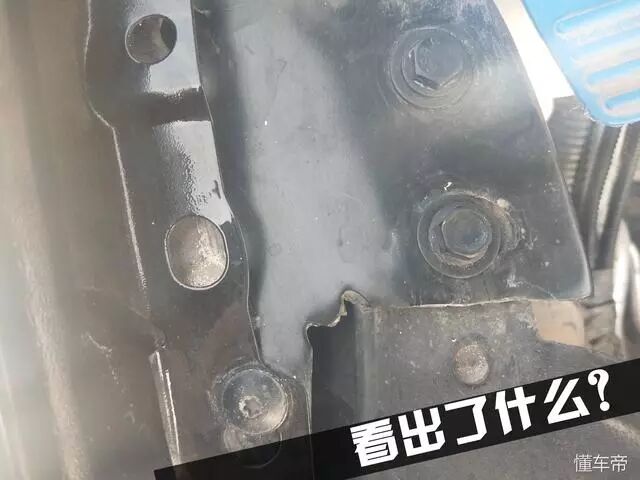 接著往里面看就能看到這輛車的發(fā)動(dòng)機(jī)基座螺絲了
